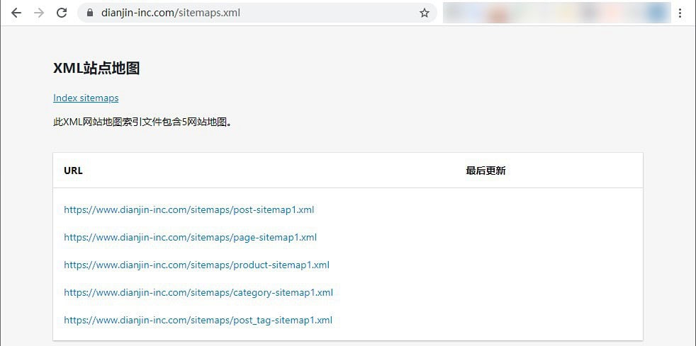 比如点津的站点地图:www.dianjin-inc.com/sitemaps.xml