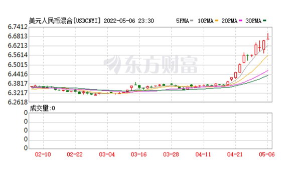 5月6日,人民币对美元汇率中间价报6.6332,较上一交易日下调660个基点。4月中下旬以来,人民币对美元汇率一改年初强势,走出一波急速下调的行情。4月19日至29日,人民币对美元汇率中间价下调达2457个基点。5月5日,人民币对美元汇率中间价报6.5672,上调505个基点。这意味着,近两周人民币对美元中间价已经下调超过2000个基点。